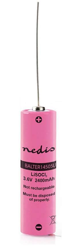 Batteri til bl.annet komfyrvakt. Dette batteriet har ledning i begge ender.