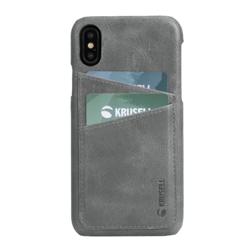 Bakdeksel i ekte skinn med 2 kortlommer, for iPhone X/XS